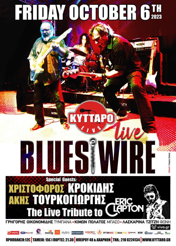Αυτή τη φορά, θα μοιραστούν τη σκηνή με δύο θρύλους της κιθάρας και ένα project – έκπληξη! Ο Χριστόφορος Κροκίδης, ο επί 15 χρόνια κιθαρίστας, ενορχηστρωτής και συνθέτης αρκετών τραγουδιών του Βασίλη Παπακωνσταντίνου, ένας μουσικός-σημείο αναφοράς στη χώρα μας με συμπράξεις με όλα τα κορυφαία ονόματα της ελληνικού πενταγράμμου και ο δεξιοτέχνης της κιθάρας αλλά και συνθέτης, συγγραφέας, δάσκαλος καθώς και συνεργάτης με την αφρόκρεμα της Ελληνικής δισκογραφίας και παλαιό μέλος των Socrates Άκης Τουρκογιώργης, ετοιμάζουν μαζί με τους εκλεκτούς μουσικούς συνοδοιπόρους τους ένα πρωτότυπο αφιέρωμα στον τεράστιο Έρικ Κλάπτον και τις καλύτερες στιγμές του από τους Yardbirds, τους Bluesbreakers (John Mayall), από τους CREAM αλλά και την προσωπική του καριέρα!!