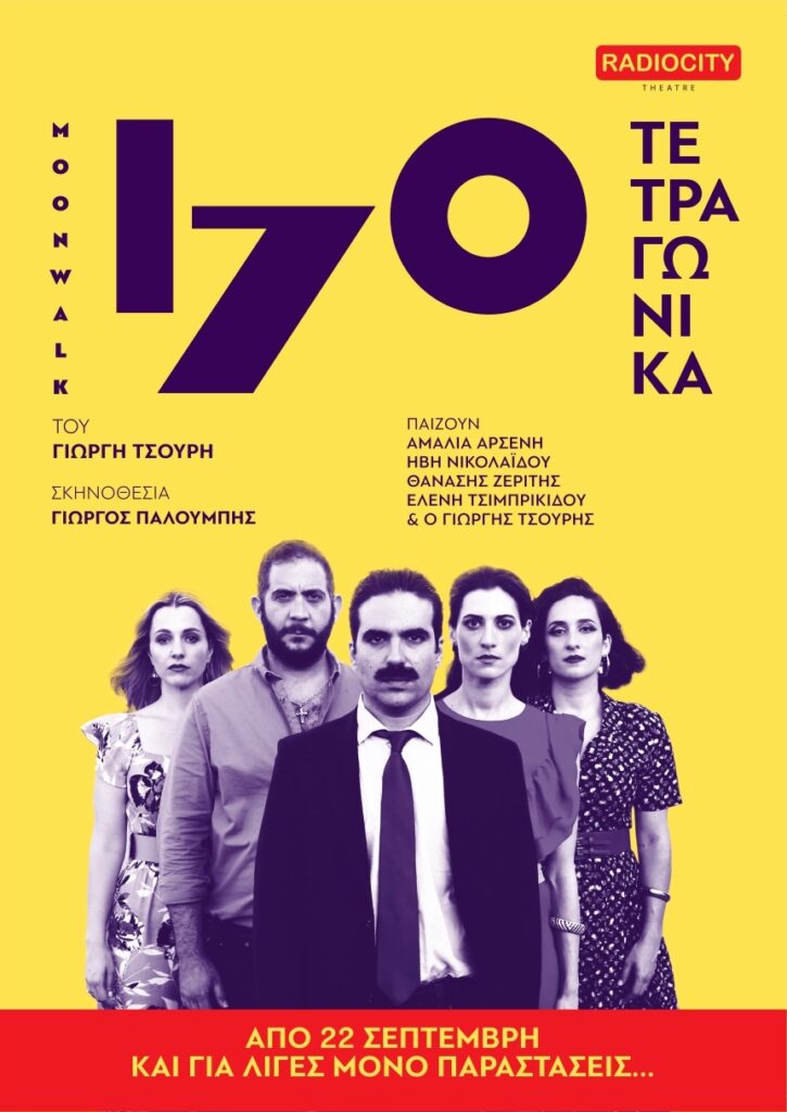 Τα 170 τετραγωνικά, το έργο-φαινόμενο, μετά από 4 χρόνια αλλεπάλληλων SOLD–OUTστην Αθήνα, ταξιδεύει στη Θεσσαλονίκη για λίγες μόνο παραστάσεις, και υπόσχεται άφθονο γέλιο και δράση, σε ένα οικογενειακό «ρινγκ» 170 τετραγωνικών. Η παράσταση που ξεχώρισε από την πρώτη στιγμή, αγκαλιάστηκε από κοινό και κριτικούς,και χάρισε στον συγγραφέα και ηθοποιό Γιωργή Τσουρή το βραβείο «Δημήτρης Χορν»,παρουσιάζεται στις 22 Σεπτεμβρίου και για ελάχιστες παραστάσεις,στο θέατρο Ράδιο City. Την σκηνοθεσία υπογράφει ο Γιώργος Παλούμπης.