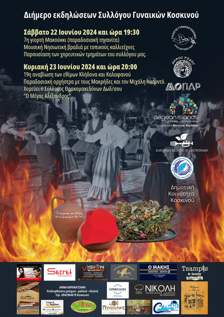 Η εκδηλώσεις πραγματοποιούνται με τη στήριξη της Περιφέρειας Νοτίου Αιγαίου, τμήμα γαστρονομίας, της διεύθυνσης ΔΟΠΑΡ Δήμου Ρόδου, της Ομοσπονδίας Πολιτιστικών Συλλόγων Ρόδου και της Δημοτικής Κοινότητας Κοσκινού