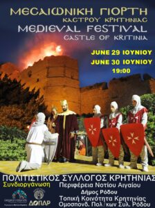 Ο Πολιτιστικός Σύλλογος Κρητηνίας σας προσκαλεί στη μεσαιωνική γιορτή κάστρου Κρητηνίας που διοργανώνει το Σάββατο 29 και την Κυριακή 30 Ιουνίου στις 7 το απόγευμα …