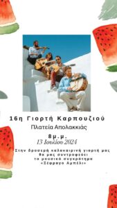 Η Γιορτή Καρπουζιού της Απολακκιάς επιστρέφει! Η Κοινότητα , ο Πολιτιστικός και ο Αθλητικός Σύλλογος Απολακκιάς με την συνδιοργάνωση της Περιφέρειας Νοτίου Αιγαίου και του…