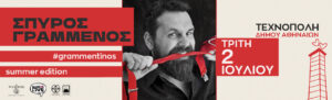 Ο Σπύρος Γραμμένος στην Τεχνόπολη, στο Γκάζι Τρίτη 2 Ιουλίου Grammentinos Summer Edition Ο Άνθρωπος που τραγούδησε τον έρωτα. Ο Άνθρωπος που περπάτησε όλη τη γη για…