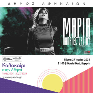 ΜΑΡΙΑ ΠΑΠΑΓΕΩΡΓΙΟΥ ΚΑΛΟΚΑΙΡΙ 2024 ΠΕΜΠΤΗ 27 ΙΟΥΝΙΟΥ ΠΛΑΤΕΙΑ ΠΛΥΤΑ – ΠΑΓΚΡΑΤΙ ΕΙΣΟΔΟΣ ΕΛΕΥΘΕΡΗ Ύστερα από μία σειρά σημαντικών παραστάσεων και συνεργασιών και μετά από την…