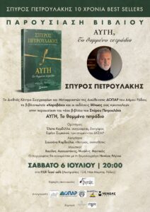 Παρουσίαση του νέου βιβλίου του Σπύρου Πετρουλάκη «Η Αυγή το θαμμένο τετράδιο» Το Διεθνές Κέντρο Συγγραφέων και Μεταφραστών της Διεύθυνσης ΔΟΠΑΡ του Δήμου Ρόδου σε…