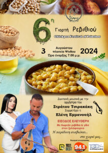 Πολιτιστικός και Περιβαλλοντικός Σύλλογος Ψίνθου Τέρψις 6η Γιορτή Ρεβιθιού Σάββατο 3 Αυγούστου Πλατεία Ψίνθου ώρα έναρξης: 19:00 Ζωντανή μουσική με την ορχήστρα του Στράτου Τσιρακάκη…