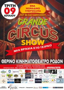Ελάτε στο πιο εντυπωσιακό τσίρκο της χρονιάς! Μια μοναδική παράσταση που θα σας μείνει αξέχαστη! Τρίτη 9 Ιουλίου στο Θερινό Κινηματοθέατρο Ρόδον Προετοιμαστείτε να θαμπωθείτε…
